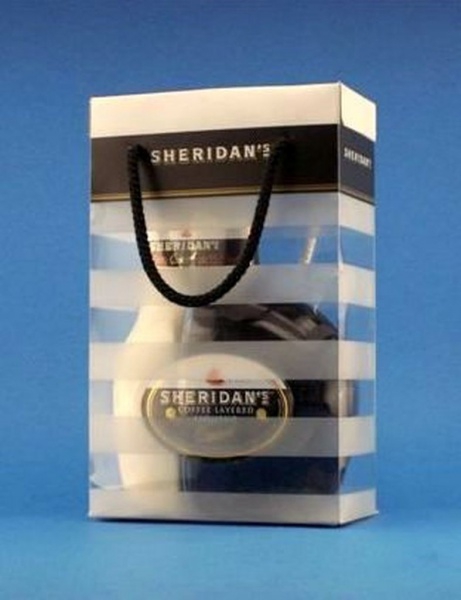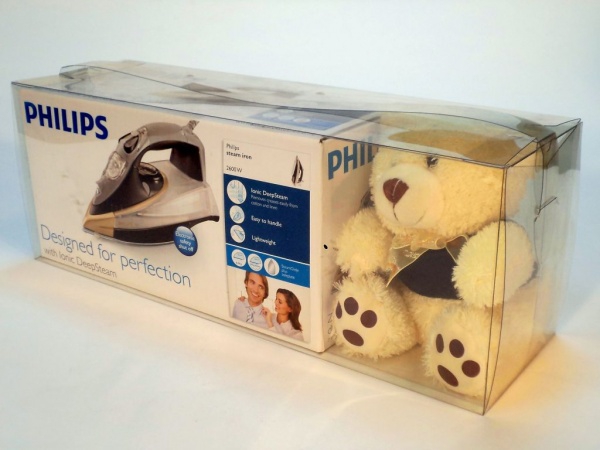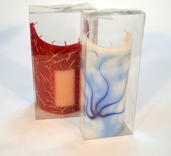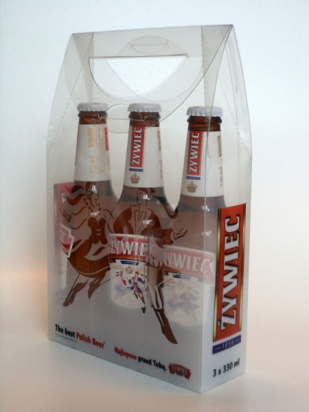 ar caurspīdīgu, stingru plēvi, kas paaugstina iepakotās preces prestižu.