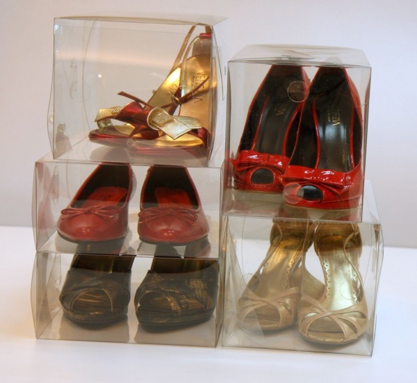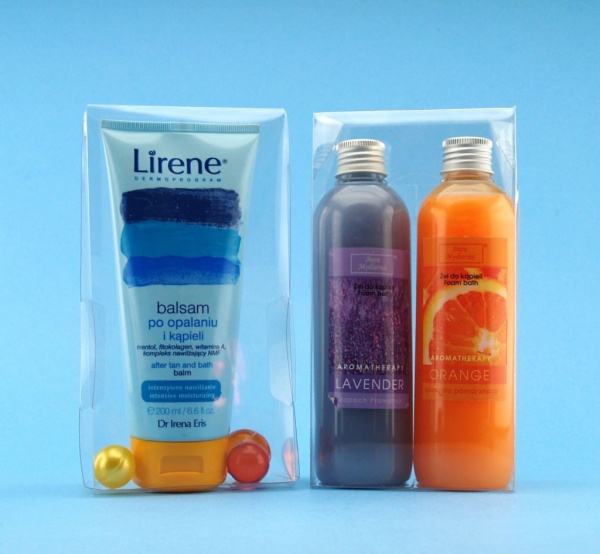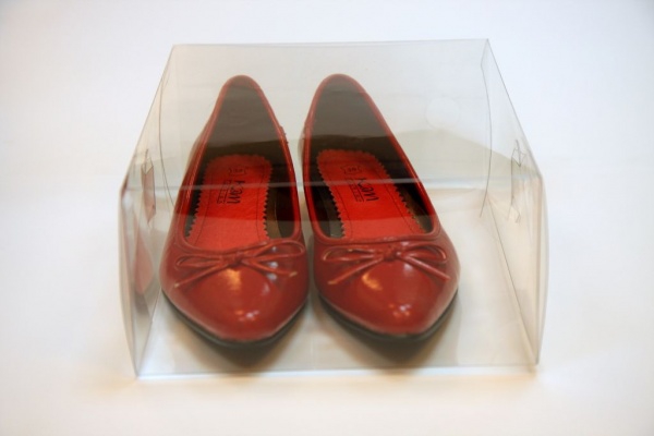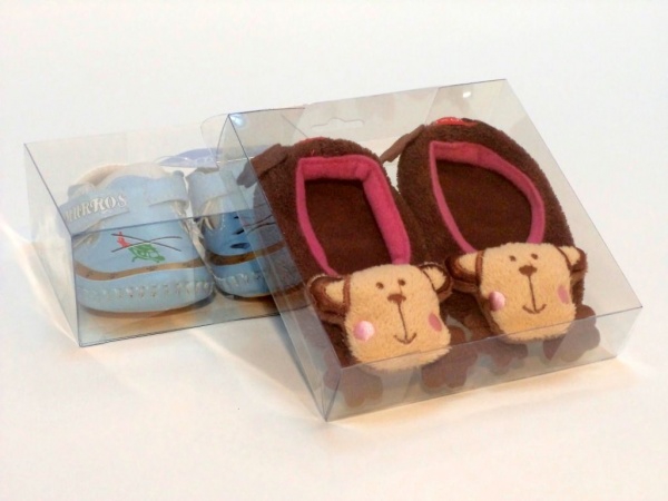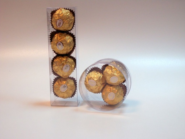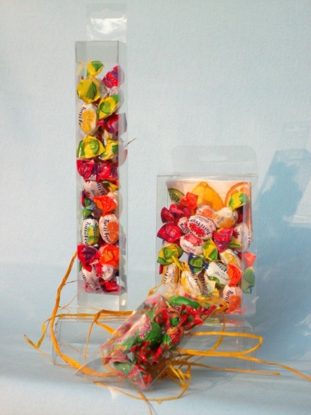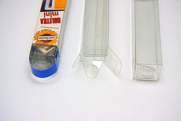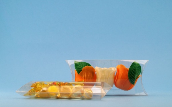 Kastes no caurspīdīgas PET plēves, kas iegūtas, izmantojot tikai